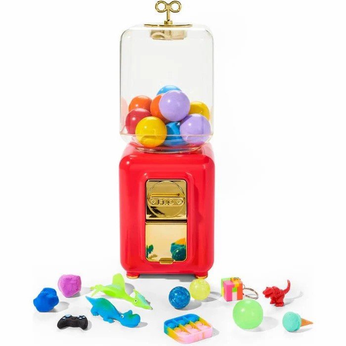 Step back in time with the F.A.O. Schwarz® Throwback Toys Mystery Vending Machine. This interactive toy is all about discovery and surprise – simply turn the knob to claim a capsule and uncover one of 12 mystery toys hidden within. The fun doesn’t stop there – refill the capsules and repeat for unlimited play. This retro-style vending machine adds a charming vintage touch to any room, complementing both play and decor. Best of all, no power is needed for operation, meaning your child can enjoy the Mystery Vending Machine anytime, anywhere, without the need for batteries or a power cable. Designed to spark curiosity and foster imaginative play, the Throwback Toys Mystery Vending Machine is recommended for children aged 3 and up. Encourage your child’s love for discovery and nostalgic fun with this engaging and unique playset.