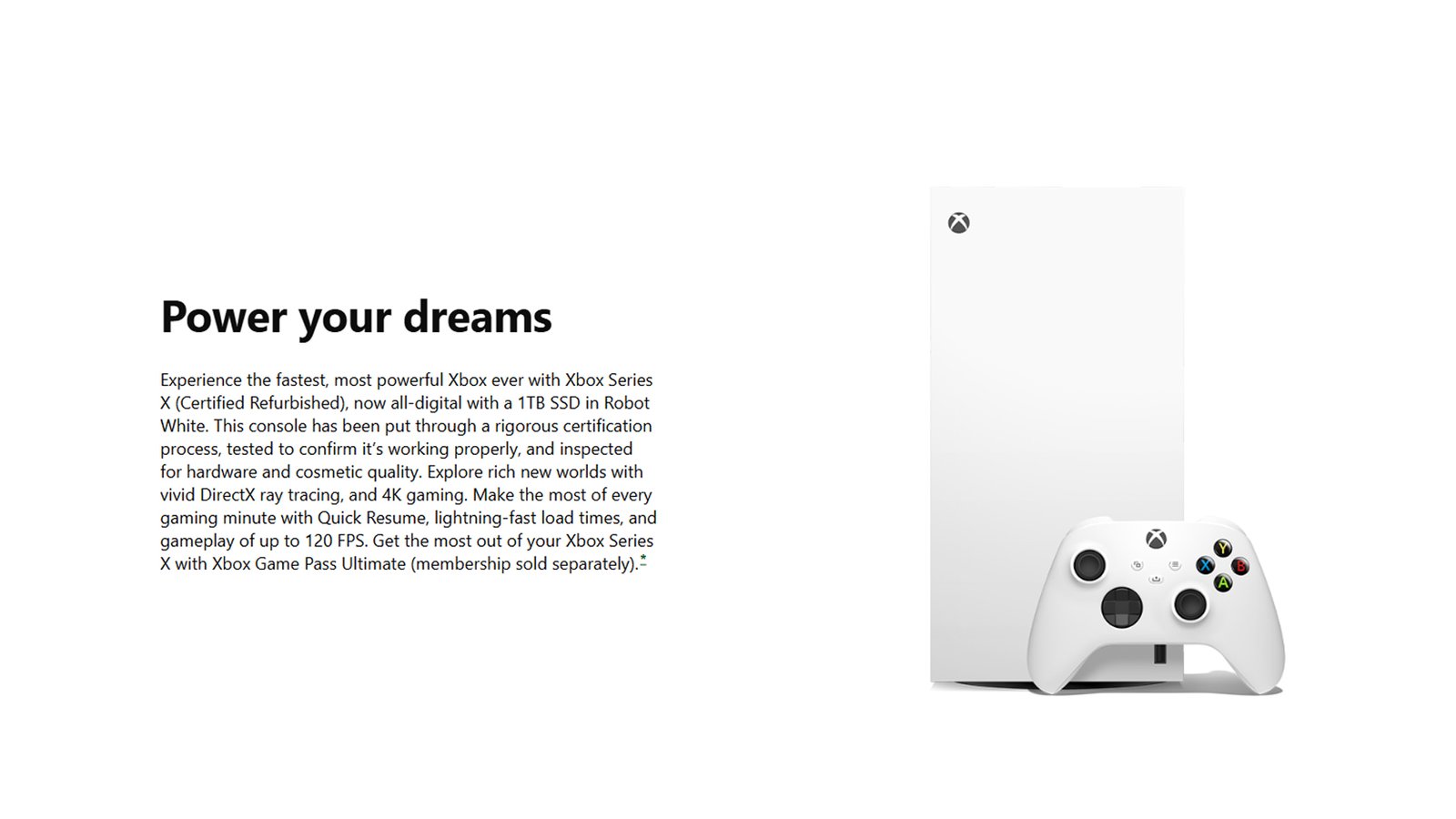 Xbox Series X – 1TB Digital Edition (Certified Refurbished) I Xbox Wireless Controller (Certified Refurbished)